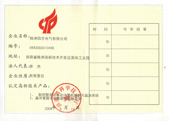 高新技術(shù)企業(yè)認(rèn)定證書
