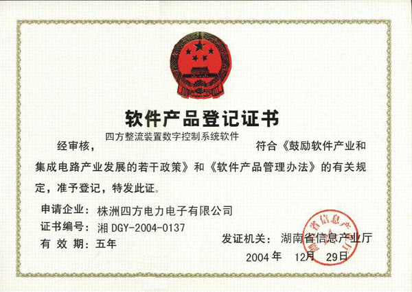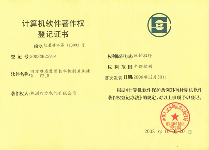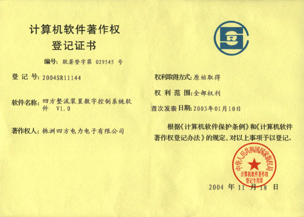 計(jì)算機(jī)軟件著作權(quán)登記證書(整流裝置)