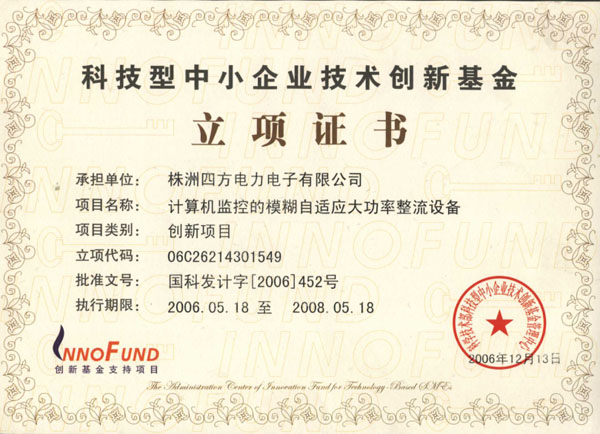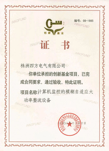 創(chuàng)新基金驗(yàn)收證書
