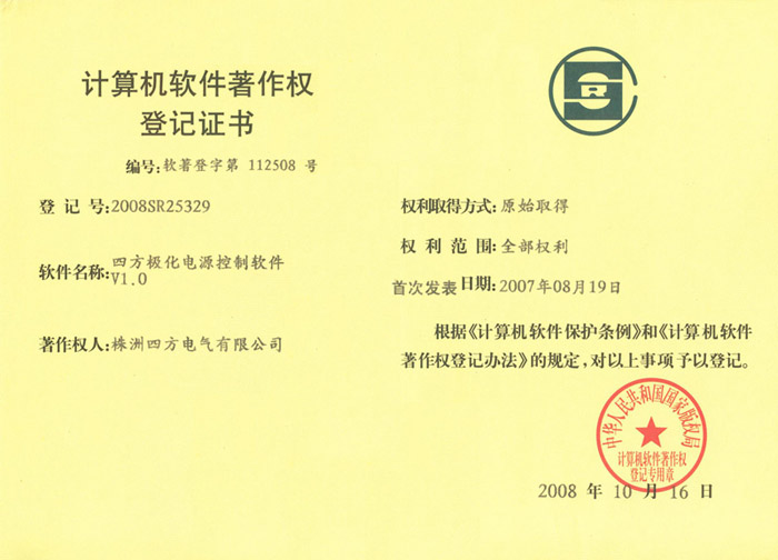 計(jì)算機(jī)軟件著作權(quán)登記證書(極化電源)